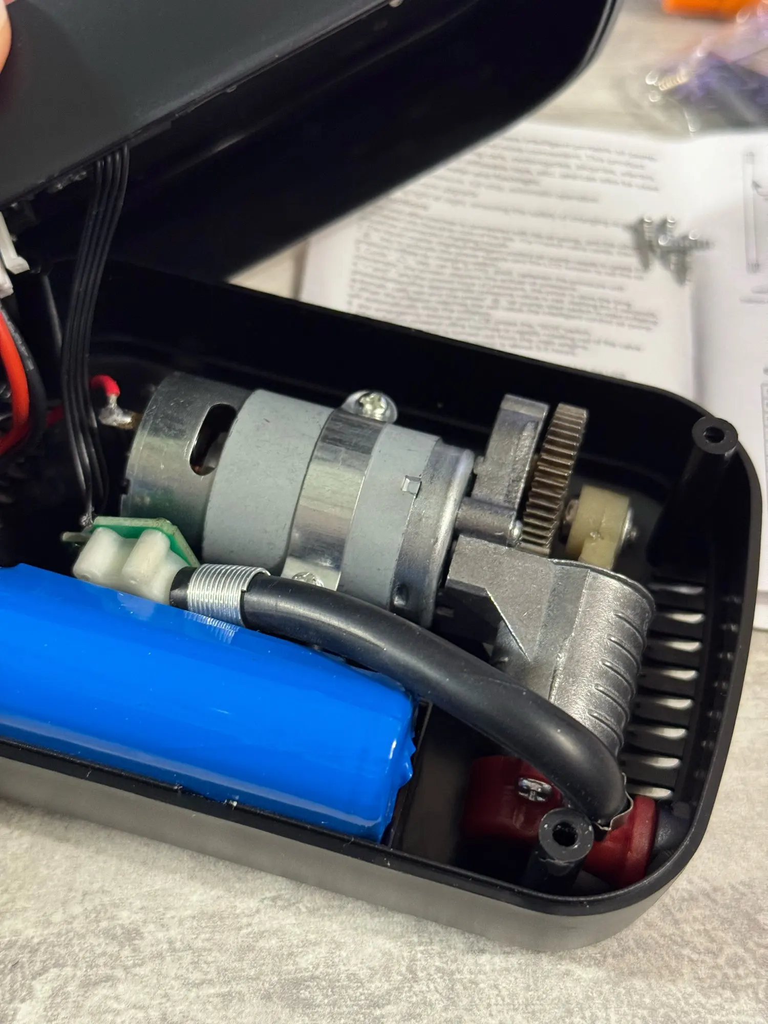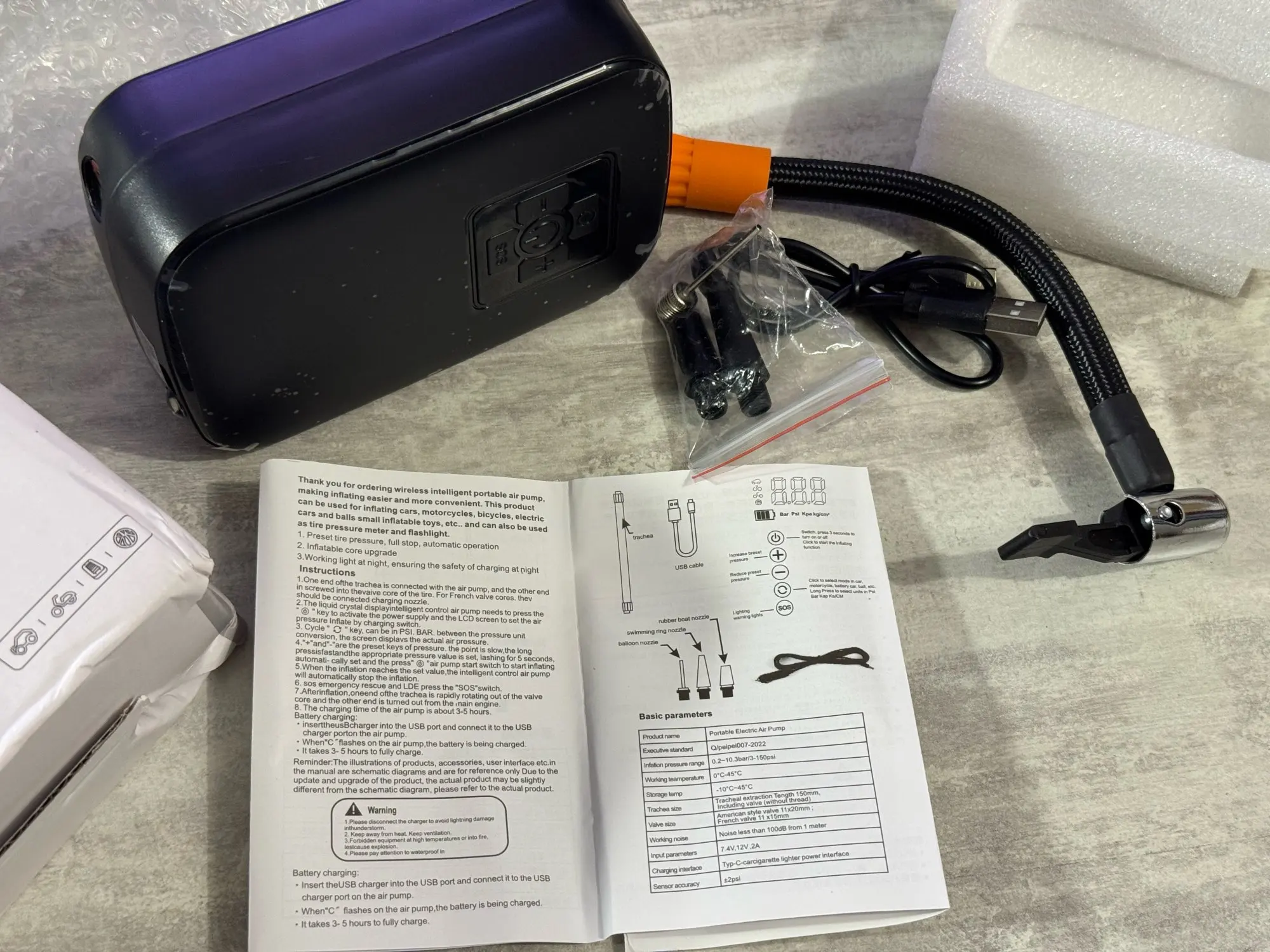 Avec des pièces de 347 UAH. Pour ce prix-là, c'est une bombe. Compact en taille. Trois accessoires pour balles et chambres. Câble de type C. Une lampe de poche est également incluse. Un peu bruyant.